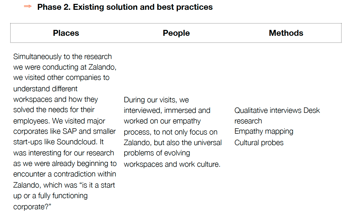 Through collaborative efforts and co-creation sessions with stakeholders, I facilitated the synthesis of diverse perspectives into actionable insights. My contributions were instrumental in aligning the solution with Zalando's objectives and addressing the challenges posed by the evolving work culture and dispersed teams."