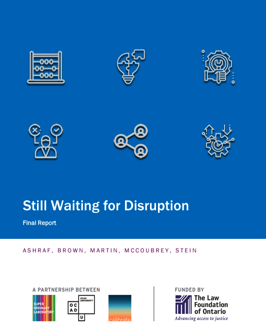 The Still Waiting for Disruption (SWD) Project seeks to address this gap by advocating for a revised approach to legal tech disruption that prioritizes advancing access to justice. The project aims to highlight the value of positive legal tech impact on the access to justice crisis in Canada. It does so by exploring existing barriers to innovation and proposing future models that provide guidance for stakeholders such as A2J actors, tech innovators, and funders/investors. Through this initiative, the project seeks to drive meaningful change in how legal technology is developed and implemented to ensure it benefits everyone in accessing justice.